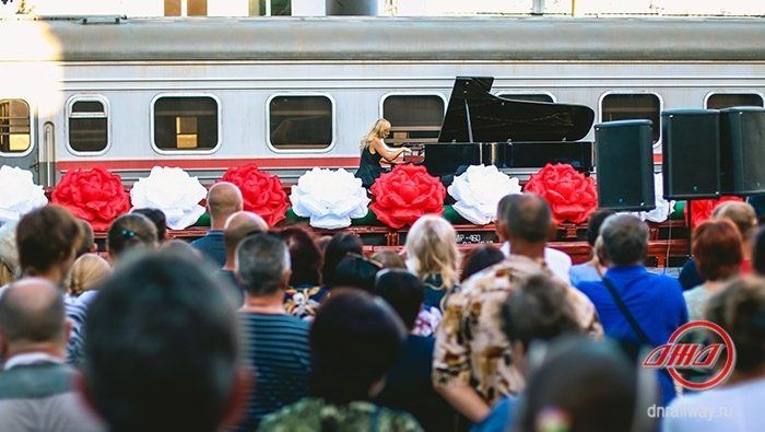Пианистка Валентина Лисица дает концерт на железнодорожном вокзале в Дебальцево