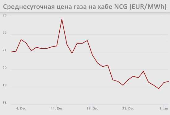 За последний месяц цена хаба NCG варьировалась в пределах €19-23 за мегаватт-час (MWh), что примерно соответствует $240-290 за тыс. кубов. Такой диапазон, конечно, никакого снижения тарифов для людей не предусматривает.