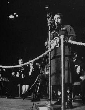 Советская делегация объехала всю страну с выступлениями. На митингах и манифестациях, во время многочисленных встреч с американцами посланцы СССР призывали союзников ускорить открытие второго фронта. Л. Павличенко неизменно повторяла: только вместе мы сможем победить «коричневую чуму». Вошло в историю, запомнилось тогда ее короткое выступление на митинге в Чикаго: «Джентльмены! Мне двадцать пять лет. На фронте я уже успела уничтожить триста девять фашистских захватчиков. Не кажется ли вам, джентльмены, что вы слишком долго прячетесь за моей спиной?..» Толпа замерла на минуту, а затем взорвалась неистовым шумом одобрения.