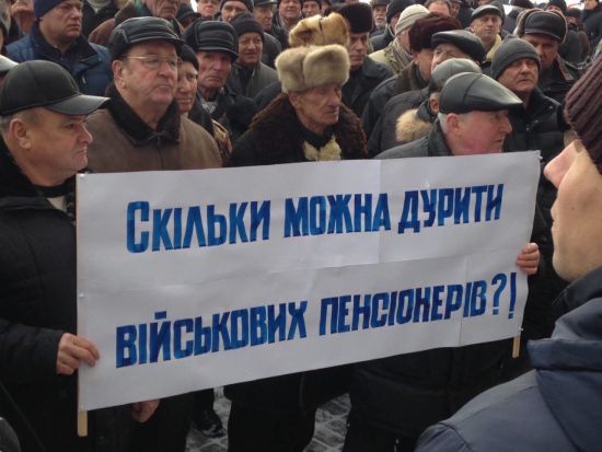 Со слов председателя областной организации ветеранов Украины генерал-майора в отставке Александра Булавина, участники митинга собрались, чтобы высказать свою позицию. Так, в течение многих лет власть обманывает военных ветеранов о перечислении новых размеров пенсий, игнорируя все их обращения. Подобные акции в этот день проходят во всех областных центрах и крупных городах, в частности, на Львовщине митингующие предприняли радикальные меры - перекрытие автодорог. Несмотря на обесценивание национальной валюты и удорожание основных видов продукции, пенсия командира полка сейчас такая же как зарплата технического работника.