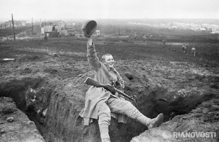 Вот как это видел участник боёв, Герой Советского Союза, писатель Владимир Карпов: «Они шли по колени в болотной жиже, а при близких разрывах ещё и падали в эту грязь, вжимались в неё, давимые инстинктом сохранения жизни. Они вставали и не только шли дальше, а тянули на лямках и верёвках за собой противотанковые пушки, зная, что без них танки опрокинут их при первой же контратаке. Что такое тянуть орудие по грязи выше колен, знает только тот, кто сам это испытал. Напрягаешься до того, что, кажется, вот-вот лопнут жилы внутри твоего тела. Пушка не просто тянется за тобой, а сначала ты сам ногами своими погружаешься в жижу. И только когда почувствуешь твёрдую землю, упрёшься в неё, да не один, а все вместе – расчёт орудия и те, кто ему помогают, упрутся да с криком, с матом поволокут, только тогда орудие поддастся, поползёт вперёд. Если лихо потянут, оно проскользит несколько десятков метров. А потом опять упираешься и рвёшь до искр из глаз… Вот так и волокли себя и пушки. Да ещё и танки откапывали. Бывало, он, могучий, горячий, забуксует, зароется гусеницами до самых подкрылков, вот матушка пехота быстренько пособит ему, подкопает спереди или сзади, он, сердешный, и выберется из колдобин. Сколько злости в нас накапливается, пока по этой грязюке ныряем. Вроде бы уж и сил нет, всё оставили, преодолевая жидкое, вязкое месиво, но как только замелькали вблизи каски и зелёные мундиры гитлеровцев, внутри будто какие-то дополнительные клапаны раскрываются – тут уж рвётся из груди само собой: «Ура!», «За Родину!», и мать, и Бога – всех вспомнят! Тут уж нас не остановят ни пули, ни гранаты, что летят нам навстречу из немецкой траншеи. Если русская пехота добралась до бруствера вражеского окопа, её никто не остановит, против неё ни одна армия не устоит. Страшен и беспощаден российский солдат в рукопашной. Бьёт он врага ловко, умело, самозабвенно…