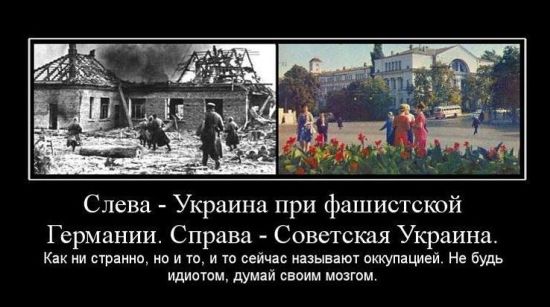За время оккупации Киева фашистами в Бабьем Яру были уничтожены десятки тысяч евреев. В расстрелах активное участие принимали украинские националисты. Из 1200 палачей Бабьего Яра только 150 были немцами (расстрельная команда СС 4-А), остальные принадлежали к полицейским батальонам (№ 45 и № 303), сформированных на Галичине из уголовников и оуновцев. Киев находился в немецкой оккупации 778 дней. За это время погибли 200 тысяч евреев, украинцев, русских. 10 тысяч молодых людей угнали в немецкое рабство. Столица советской Украины была освобождена от нацистов, а всех преступников настигла справедливая кара. Бандеровцев вешали на центральной площади Киева. Пройдёт немного времени и их потомков постигнет та же участь.