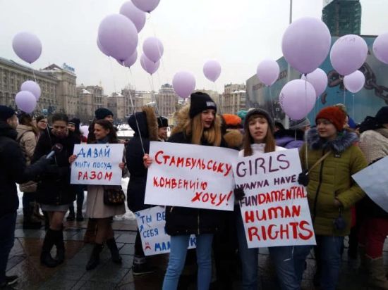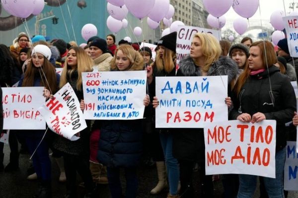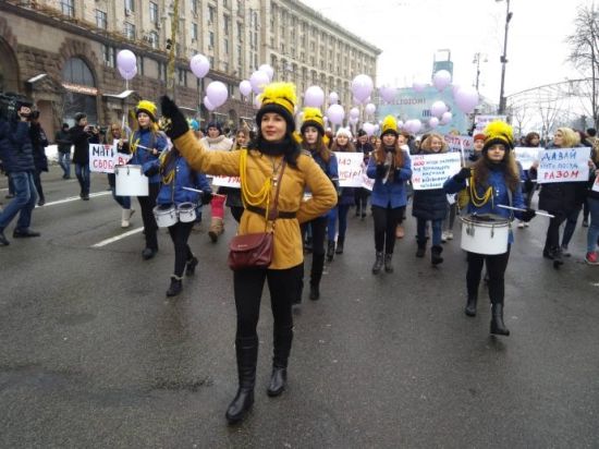 Наиболее многочисленный Марш за права женщин феминисток прошёл в Киеве. Несколько сотен участниц прошлись колонной под звон кастрюль с плакатами «Давай вместе мыть посуду», «Давай вместе воспитывать детей», «МАТИ вибір» (иметь выбор), «МАТИ можливості» (иметь возможности), «Мы - настоящие Национальные Дружины», «Хочу рожать детей, а не военных», «Моё тело - моё дело».