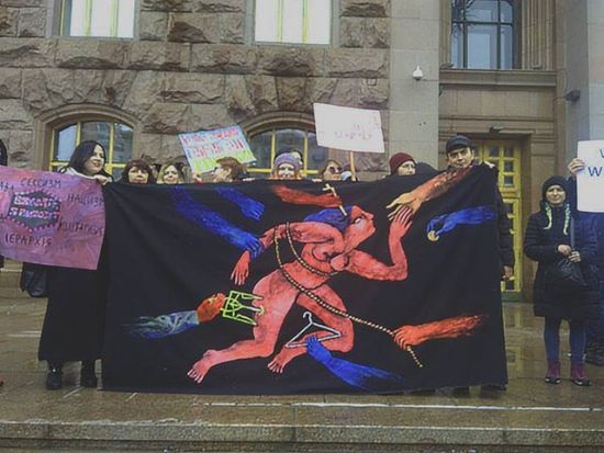 Уже на следующий день по поводу этого плаката вспыхнул скандал. Член неонацистской группировки С14 Денис Полищук возмутился: «Вешалка как Герб. Украинское Государство как ярмо для женщины. Кому известны данные существа, на которых сегодня составили админпротокол за надругательство над государственным символом? Антиукраинская мазня была замечена не в оккупированном Крыму, Донецке, Луганске. Сегодня это появилось в украинской столице во время советского праздника восьмого марта».