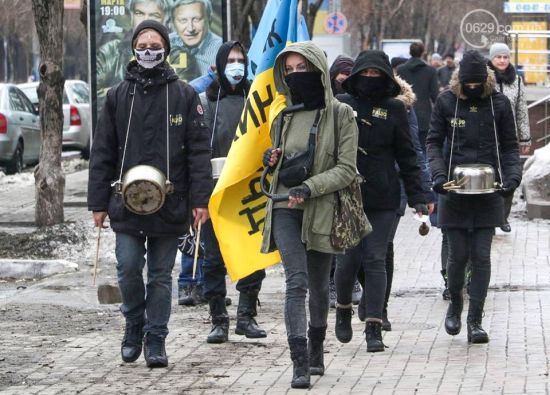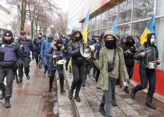 В Мариуполе десяток феминисток в чёрных одеяниях с лицами закрытыми балаклавами и масками, под охраной полиции, прошли по городу с национальными прапорами, расписанными своими лозунгами, стуча в кастрюли. Против них выступили участники «Национальных дружин», но полиции удалось предотвратить серьёзный конфликт.