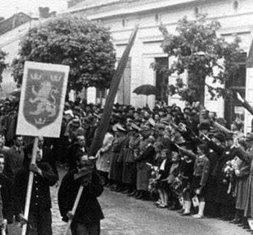 Парад вояк дивизии СС «Галиция» в Станиславе (Ивано-Франковске)