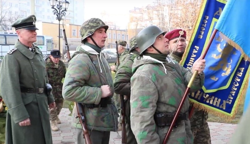 Всё это происходит, несмотря на принятие Верховной радой прошлого созыва закона, запрещающего пропаганду нацизма. За георгиевскую ленту или красное знамя можно угодить в тюрьму, а люди в нацисткой форме свободно участвуют в мероприятиях в присутствии полиции и государственных чиновников.