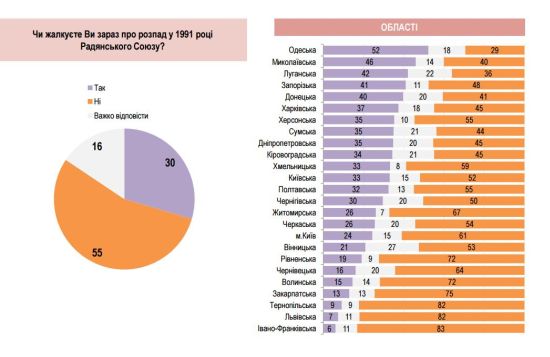 Не менее трети опрошенных жителей Украины в начале 2018 года сожалели о распаде СССР.