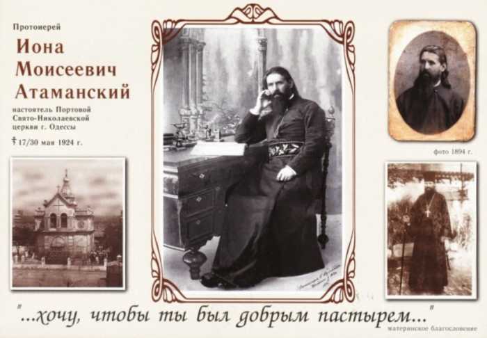 С 1897 по 1901 год священник Иона Атаманский служил в Свято-Успенском соборе Одессы. Для прихожан он был личным примером, люди буквально ловили каждое его слово. До сих пор в соборе хранят деревянный крест отца Ионы, который выносят многочисленным богомольцам для целования в дни его памяти. 3 июня 1901 года отец Иона стал настоятелем Портовой Свято-Николаевской церкви. Здесь и проявились по милости Божией его духовные дарования, безграничное милосердие и непобедимость в противостоянии с тёмными силами. Отец Иона имел дар изгнания бесов из страждущих людей. За это тёмные силы мстили, причем через домашних. То в его доме случался пожар, то грабёж. Скорби терпели даже дети. Известен поразительный факт из жития праведного Ионы: дочь София вела настолько, скажем так, не богоугодную жизнь, что скорбящий отец произнес такие слова: «Я вымолю тебе у Бога мучительную смерть для покрытия твоих грехов и для спасения». Это было не проклятье, как может показаться, а наоборот, свидетельство настоящей любви и заботы об участи души заблудшей дочери в Вечности. Со временем София попала в психиатрическую больницу и в 1941 году, когда немецко-румынские оккупанты заняли Одессу, была расстреляна вместе со всеми пациентами и персоналом.