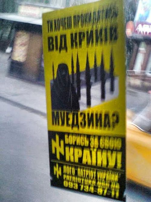 Публикацию сопровождали появившиеся в ряде городов лайтбоксы «Азова» с призывом: «Ты хочеш прокидатися від криків муедзина? Борись за свою країну!»