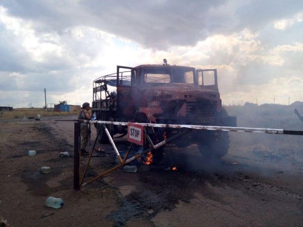 Версия республик: произошедшее вообще не было результатом обстрела, взрыв грузовика произошёл из-за неосторожного обращения с боеприпасами. И хотя в сети появилось фото некого сожжённого грузовика, другие источники утверждают, что была обстреляна одна из машин сопровождения главы ВГА. В общем, дело тёмное.