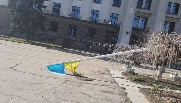 Как известно, 12 февраля около 6 часов утра в Одессе на Куликовом поле рухнул флагшток с государственным флагом. Именно здесь массовым убийством одесситов в Доме профсоюзов завершилась кровавая вакханалия украинских националистов, жертвами которой стали 48 человек. Поднятый 5 мая 2014 года на том самом флагштоке украинский прапор стал символом «перемоги» киевского режима над Одессой, над противниками «революции гидности». Националисты также считают, что в Одессе они остановили «Русскую весну» и не дали случиться Новороссии. Поэтому день 2 мая у них праздник, день их торжества. Однако про символ этой своей «перемоги», судя по плачевному состоянию свалившегося наземь полотнища, они забыли.