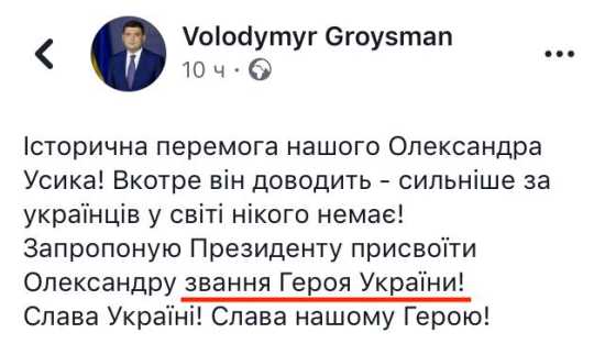 О величии «украинского флага над Москвой» вспомнил и мэр Киева, а Гройсман сообщил, что «сильнее украинцев в мире никого нет» и предложил присвоить Александру звание Героя Украины.