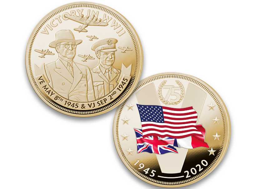 В США частная компания Bradford Exchange выпустила памятную сувенирную монету к 75-летию окончания Второй мировой войны. Продавать будут за $39,99.