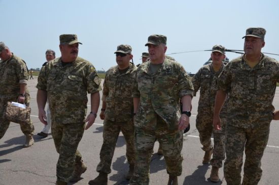 В зоне т. н. АТО генерала сопровождали Джордж Кент, заместитель посла США на Украине, полковник Джозеф Райан, помощник генерала Милли, полковник Пол Шмитт, военный атташе при посольстве США.
