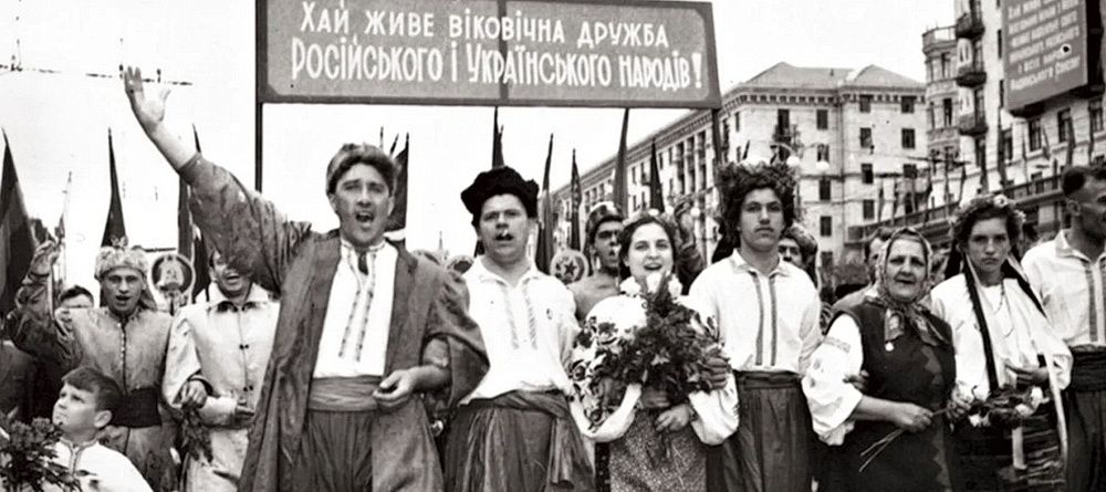 Киев в мае 1954 года, в дни празднования 300-летия воссоединения Украины с Россией. Торжественное народное шествие по Крещатику