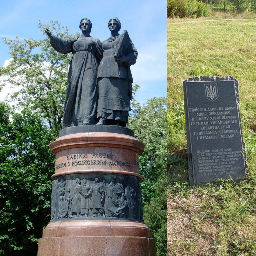 Памятник 300-летию воссоединения Украины с Россией и черноволовский знак «отречения от присяги».