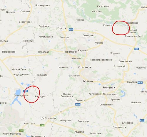 Речь шла о районах сел Крымское и Желобок (которое якобы тоже попало под контроль ВСУ), находящихся возле поселка городского типа Фрунзе и 31 блокпоста Народной милиции ЛНР, откуда контролируется «Бахмутка».