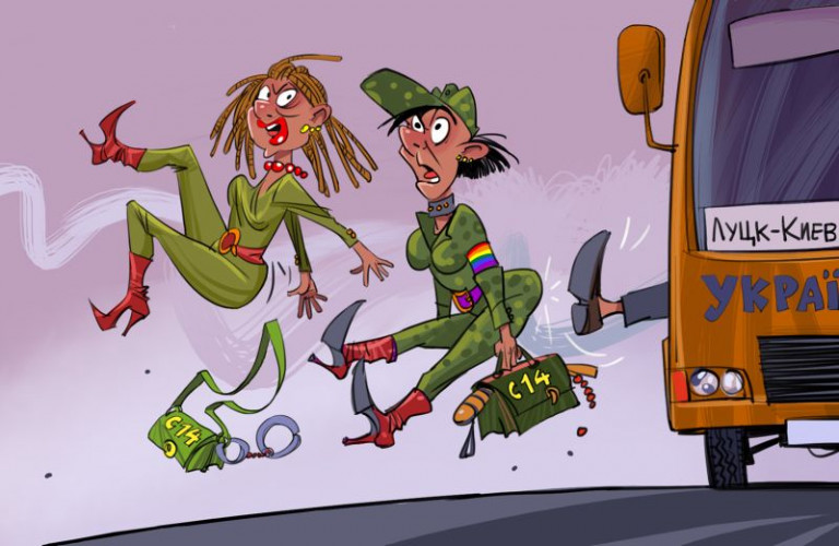 Водитель автобуса на маршруте Луцк-Киев высадил на трассе двух молодых националисток. Одна из них, так называемая волонтёр АТО Ярина Черногуз, в агрессивной форме потребовала выключить трансляцию российского сериала как «телепродукта оккупантов». Действия водителя, указавшего волонтёркам на дверь, одобрили рядовые пассажиры, которые после конфликта мирно продолжали смотреть сериал.