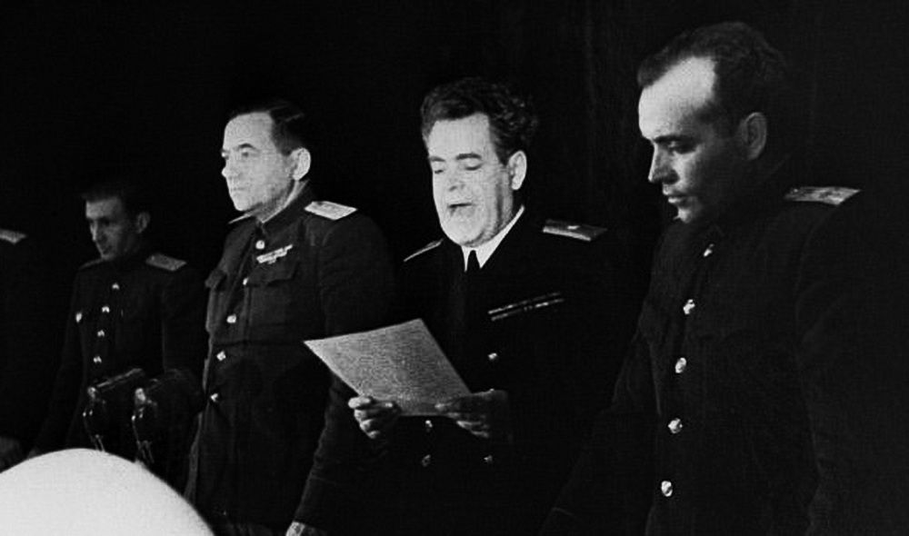 Обвинительную речь произносит генерал-майор юстиции Д.Д. Чертков (в центре снимка)