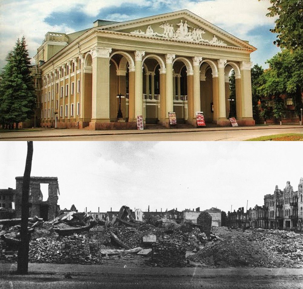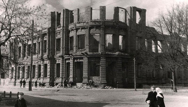 На заглавном фото: Полтава после освобождения в 1943 г. Здание госархива.