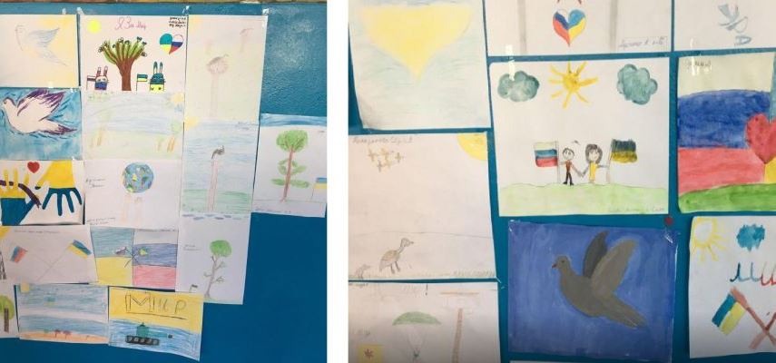 Активист и «ветеран» Валентин Диброва говорит: «Учительница изобразительного искусства этой школы дала задание детям нарисовать рисунки. Она это мотивирует тем, что изображали мир во всем мире. Но многие рисунки так или иначе связанные с миром с Россией: изображены российские флаги, российская военная техника, танк салютует». Это законодательством не запрещено, но запрещается гопак-патриотами.