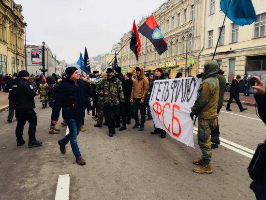 Как и было обещано бандеровцами из ОУН, «Правого сектора» (организации, запрещённые в РФ – ред.) и нескольких маргинальных группировок национал-радикалов, 18 февраля в столице Украины состоялся марш под лозунгом «Смерть России» и погром центра «Россотрудничества». Накануне погром этого центра устроили нацисты из банды С14, в воскресенье эстафету у них приняли бандеровцы. По ходу своего марша, в котором приняло участие 200-300 маргиналов, бандеровцы разгромили отделение Сбербанка. Участники марша скандировали: «Крым - наш, Донбасс - наш, Кубань – наша», «Москаляку на гиляку» и тому подобные лозунги.