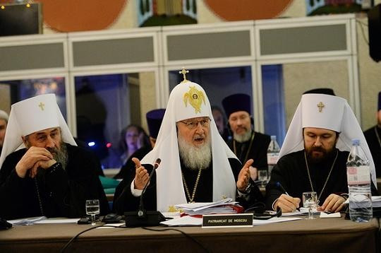 Характерно, что украинской темы вообще не было в повестке дня. Но она прозвучала довольно сильно и ясно. В выступлении патриарха Кирилла, в частности, была дана характеристика церковной ситуации на Украине: «Сейчас насильственным путем захвачено более 30 храмов Украинской Православной Церкви, еще не менее 10 находятся под угрозой нападения раскольников и националистов, выдающих происходящее за якобы добровольный переход верующих в так называемый Киевский патриархат, — сообщил он. — На самом деле это самый настоящий бандитский, рейдерский захват: проводят собрание лиц, не имеющих отношения к общине, затем при помощи властей фальсифицируют уставные документы, захватывают храм силами боевиков-националистов, а общину храма вместе со священником выбрасывают на улицу!» Предстоятель Русской Церкви выразил глубокую озабоченность в связи с действиями некоторых иерархов Константинопольского патриархата, которые, посещая Украину, выражают свою поддержку раскольникам якобы от имени Святейшего Константинопольского Патриарха и тем самым сеют соблазн среди украинских верующих и духовенства.