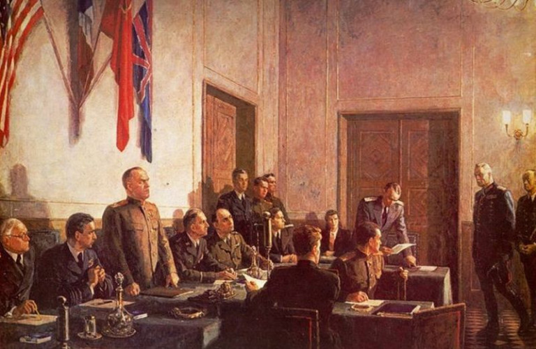 Заглавное фото: Подписание акта о безоговорочной капитуляции фашистской Германии. Художники Кукрыниксы. 1946 г.