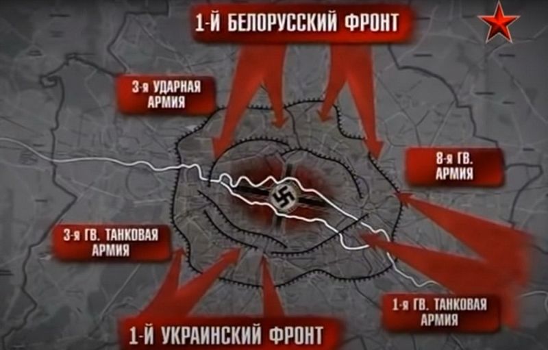 Схема окружения Берлина армиями 1-го Белорусского и 1-го Украинского фронтов