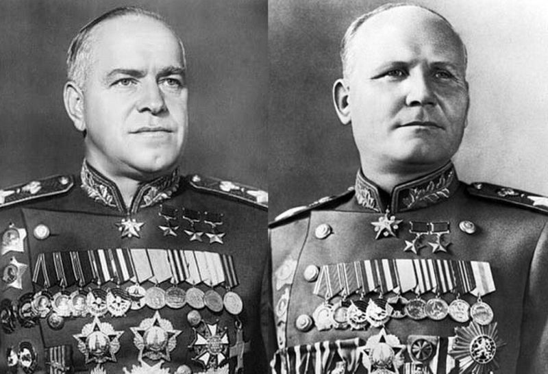 Командующий 1-м Белорусским фронтом маршал Георгий Жуков и командующий 1-м Украинским фронтом маршал Иван Конев, которым выпала честь брать Берлин