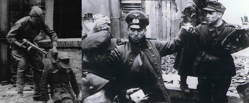 Защитники легендарного «Дома Павлова» в Сталинграде в количестве максимум 30 бойцов, имевшие исключительно стрелковое оружие, 58 дней и ночей держали оборону своей твердыни, после чего включились в контрнаступление. Пятитысячному вооружённому до зубов гарнизону Рейхстага стойкости хватило лишь на 4 дня (28 апреля – 2 мая). Да и то уже к вечеру 30 апреля свой первый штурмовой красный флаг над захваченной частью здания водрузили лейтенант Рахимжан Кошкарбаев и рядовой Григорий Булатов из разведгруппы лейтенанта Сорокина. Далее флаги появлялись чуть ли не каждый час – на фронтоне, на колоннах, башнях. Четвёртое по счёту, установленное на куполе рано утром 1 мая лейтенантом Алексеем Берестом, сержантом Михаилом Егоровым и младшим сержантом Мелитоном Кантарией, вошло в историю как Знамя Победы.