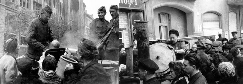 Сразу же после окончания боёв полевые кухни РККА начали раздачу пищи берлинцам.