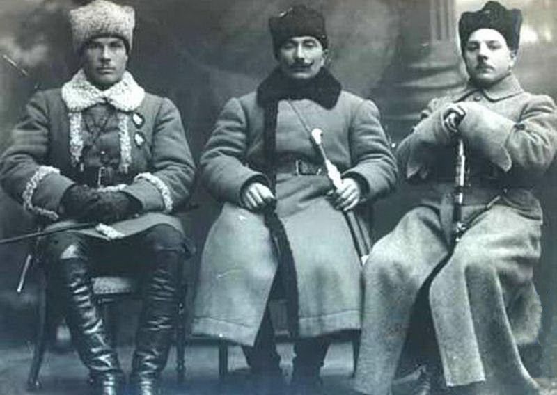 Комдив С.К. Тимошенко с С.М. Будённым и К.Е. Ворошиловым