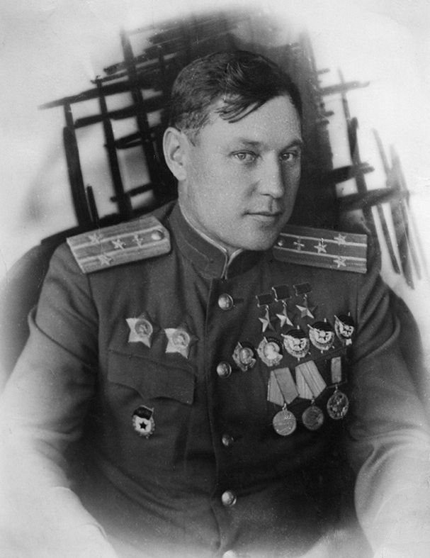 В очерке «Хозяин неба – Александр Покрышкин» военкоры Малышко и Верхолётов писали: «Он наваливается всем огнём, сжигает, как доменная печь. Все огневые точки на машине Покрышкина были переведены на одну гашетку. Вчетвером против 50, втроём против 23, в одиночку против 8 вступал в бой Покрышкин. И никогда не знал поражений. Притом в каждой схватке он брал на себя самое опасное – атаку ведущего немецких групп». В мае 1943 года Покрышкину присвоили первое, а в августе того же года – второе звание Героя Советского Союза. В 1944 году полковник Покрышкин уже командовал 9-й гвардейской авиадивизией, на его счету за 550 боевых вылетов было 53 сбитых самолёта противника. За совершённые подвиги он получил третью звезду Героя Советского Союза и стал первым трижды героем.
