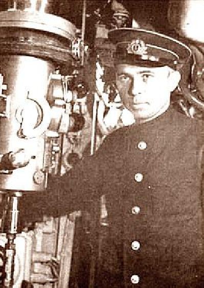 Капитан 3-го ранга Александр Маринеско у перископа подводной лодки
