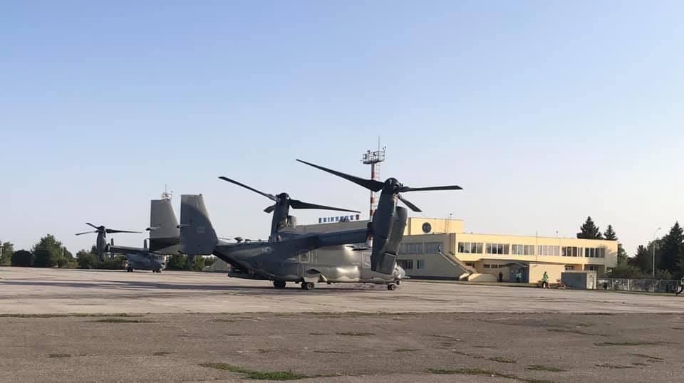 Иностранного военного присутствия всё больше. В Виннице приземлился странный летающий аппарат – американский конвертоплан (аппарат, сочетающий отдельные преимущества самолёта и вертолёта) Bell V-22 Osprey, который находится на вооружении Корпуса морской пехоты США, ВМС США и ВВС США. Что он делает в самом центре Украины – в Виннице? Впрочем, «западным партнёрам» виднее.