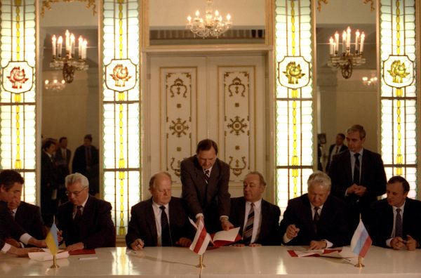 Выстрелило через годы то обстоятельство, что не ставился вопрос о Крыме и Юго-Востоке Украины. Он мог быть поставлен принципиально – «грубо, зримо» о необходимости проведения референдумов для выявления желания населения тех или иных регионов быть в составе того или другого государства. Дубинин при этом показывает, что «у Украины в силу специфики процесса формирования её территории фактически не было юридически оформленных границ». Правительство Ельцина эту очевидную особенность Украины решило использовать для получения выгод при разделе ЧФ. И не более того. В Беловежской Пуще в декабре 1991 года, как утверждает первый президент Украины Леонид Кравчук, его российский коллега не поднимал вопрос принадлежности Крыма и не требовал вернуть полуостров России: «Позиция была такова, что каждая республика забирает себе то, чем владеет на данный момент». Словно речь только о территории, но не о людях. Увы, уровень булгаковского Бунши: «Кемска волость? Да пусть забирают на здоровье…»