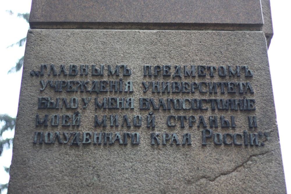 Надпись на постаменте памятника Василию Каразину в Харькове (скрыта от глаз людских в 2023 году)