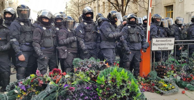 Градус сопротивления между частью украинских радикалов и режимом Порошенко постоянно растет. Столкновения «Национального корпуса» и Национальной полиции, пусть не такие как в Черкассах и Полтаве, происходили в Ровно и в Ивано-Франковске, а в воскресенье Билецкий и его люди провели на майдане крупную акцию «Дотиснемо «свинарчуків» разом!». Свининой на сей раз не бросались, но завалили полицию похоронными венками.