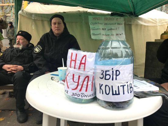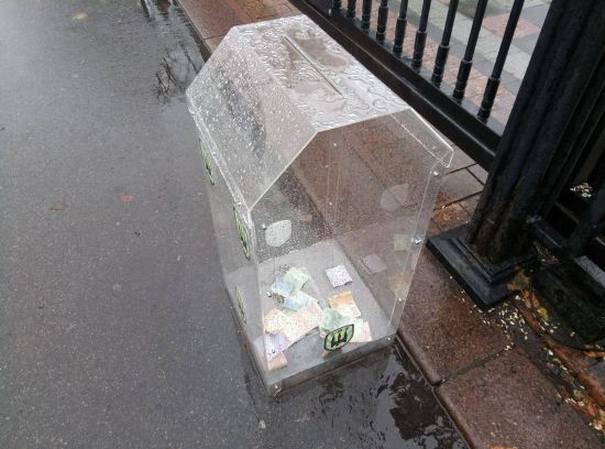 На майдане выставили большой прозрачный бокс для сбора денег на революцию. На донышке валяется несколько мелких купюр. Нищим возле перехода подают больше. «Патриоты» поиздержались. Какой-то «герой» с нашивкой карательного батальона «Донбасс» поставил возле себя две пустых посудины от воды и собирает в них взносы на «пули для предателей». Ясное дело – пожертвования пойдут не на пули, а на сигареты и пиво для протестующих.