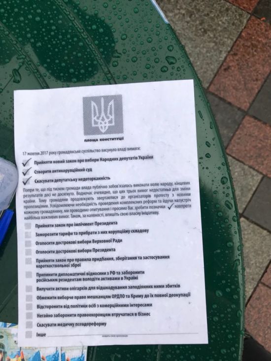 Звучали бандеровские песни. Потом, как это водится, спели хором гимн. Присутствовавшим раздавали анкеты с новыми требованиями к власти, которую надо было заполнить и бросить в ящик «Рошен».