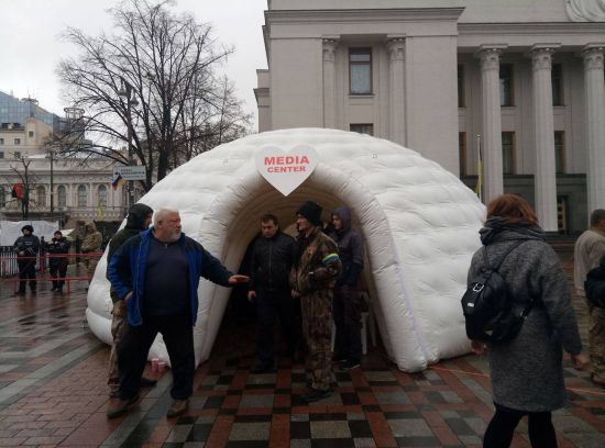 На майдане установили огромную белую палатку, которая изображает пресс-центр. Собираются читать собравшимся какие-то лекции. Развесили агитацию. Скучно. Нет никакого драйва.