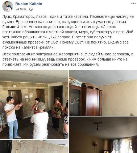 Об этом глава Всеукраинской ассоциации переселенцев Руслан Калинин написал на своей странице Facebook.