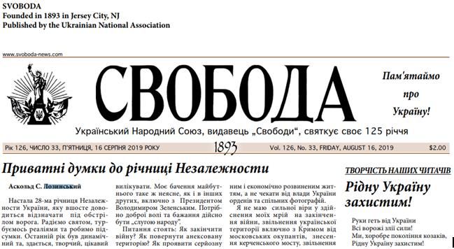 Газета украинских националистов США «Свобода» напечатала статью главного идеолога заокеанских украинских националистов Аскольда Лозинского, в которой он даёт наставления новому президенту.
