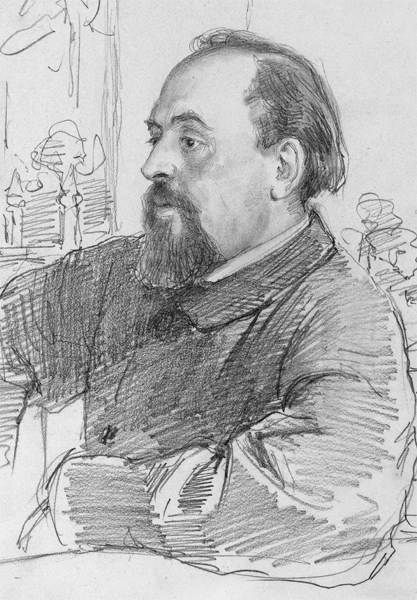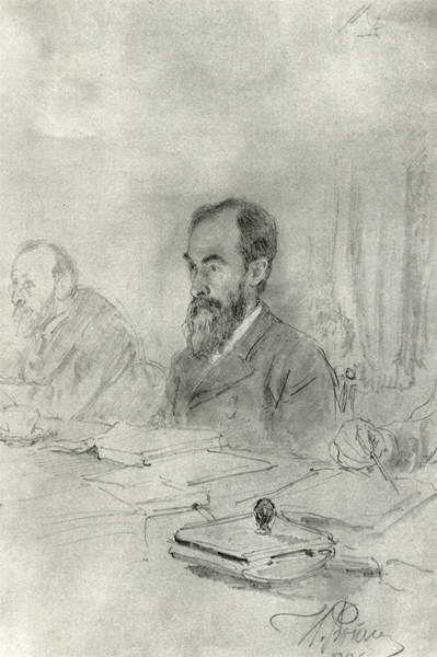 Павел Третьяков на собрании в Академии художеств. Рисунок Ильи Репина. 1896 г.