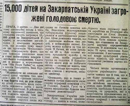 Например, американская газета «Українські щоденні вісті» в 1932 году опубликовала несколько десятков статей о страшном голоде в населенных украинцами районах Польши, Румынии и Чехословакии.
