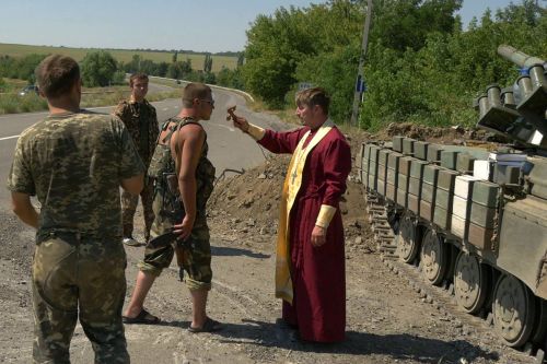 Филаретовец Дмирий Поворотный в карательном батальоне «Днепр-1» благословляет украинских нацистов на «умиротворение» Донбасса