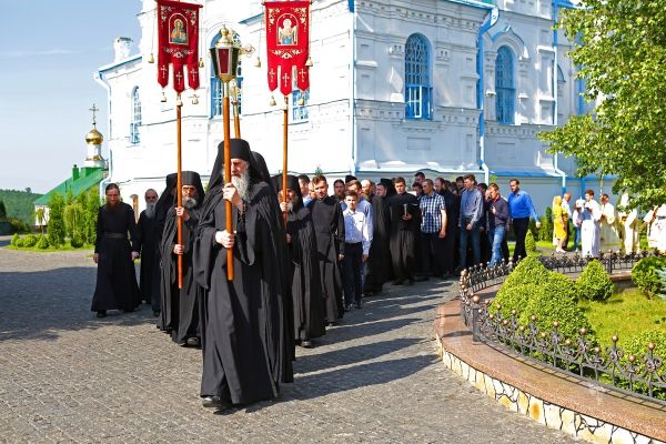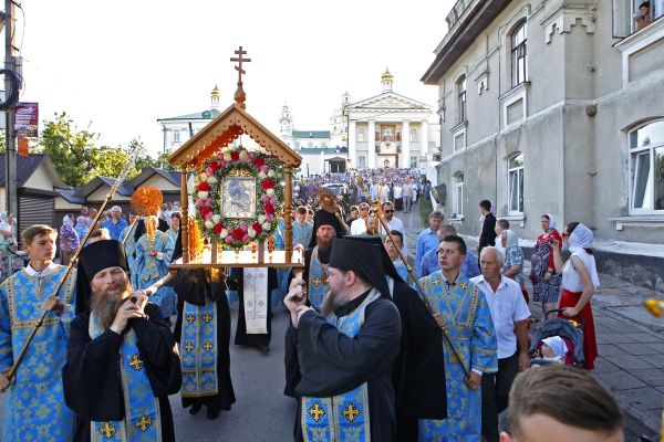 Крестный ход с чудотворной Почаевской иконой Пресвятой Богородицы от Успенского собора Почаевской лавры в Свято-Духовский скит