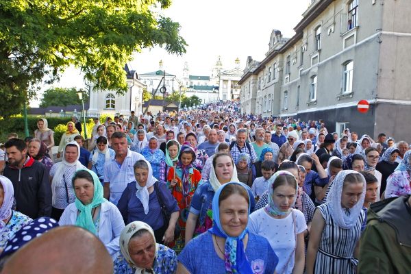 13 июня во время Всенощного бдения состоялся большой Крестный ход с чудотворной Почаевской иконой Пресвятой Богородицы от Успенского собора Почаевской лавры в Свято-Духовский скит. Весь путь обычно занимает 40 минут. На площади перед главным храмом обители крестоходцы участвовали в благодарственном молебне и получили помазание освящённым маслом. Вечернее богослужение закончилось праздничным выступлением знаменитых хоров Почаевской лавры.